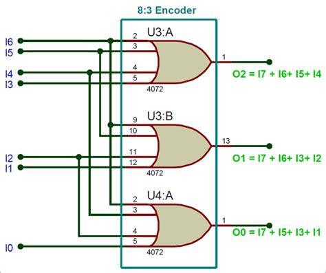 Web circuit design 8 to 3 encoder circuit created by taharohail77 with tinkercad The above circuit diagram contains two or gates. The purpose of encoder is.